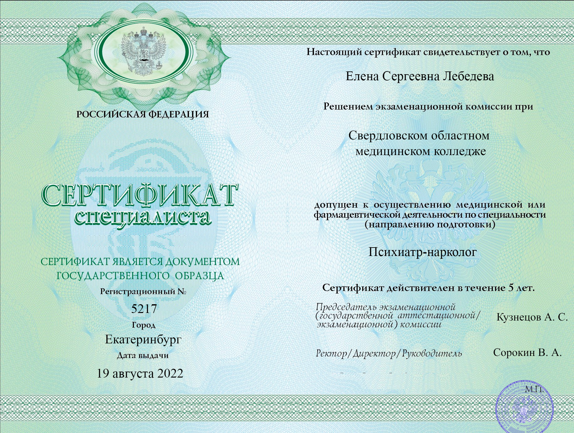 Елена Сергеевна Лебедева врач нарколог клиники доктора Стукаловой в Алупке